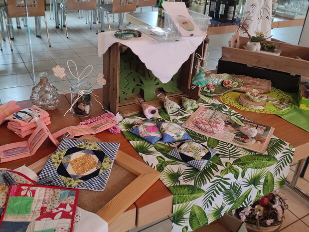 Die Akener Landfrauen präsentierten auf kleinen Ausstellungsflächen ihre Arbeiten der vergangen Jahre, wie zum Beispiel selbstgenähte Tischdecken oder Anhänger.