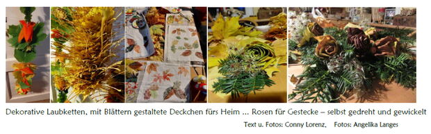 Die Begeisterung während dieses Seminars war groß, angesichts der z. T. neu an sich entdeckten Fähigkeiten. Die gefertigten Dekorationen wurden gern mit nach Hause genommen und dort auch sofort platziert.