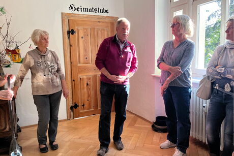 Anschließend stellte Herr Osang die Heimatstube im Bürgerhaus mit dem alten Klassenzimmer vor. Es gab viele alte Dinge z.B. Wäschemangel, Puppenstube von früher, Küchenutensilien usw. zu besichtigen. Bei vielen Frauen wurden Kindheitserinnerungen geweckt und an Großmutters Zeiten erinnert. Das Klassenzimmer mit den alten Holzbänken und Schiefertafeln war für jede Landfrau ein Highlight. Herr Osang erklärte viel zur früheren Lebensweise und untermauerte seine Erklärungen mit kleinen Anekdoten. Es wurde sich viel über das Brauchtum ausgetauscht.