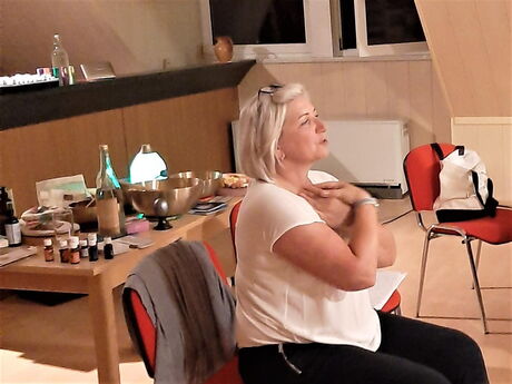 Auch erklärte uns Frau Pannier, welche ätherischen Öle zur Entspannung z.B. Lavendel oder Stimmungsaufhellung z.B. Mandarine beitragen können. Hier ließen wir uns von ihr gern beraten. Weiterhin gab sie uns einige Literaturvorschläge, die aufzeigen bzw. helfen können, Stress im Alltag zu bewältigen („Achtsam mit den Atemzügen“, „Was die Energie zum Fließen bringt“, „Waldbaden “oder „Die sieben Geheimnisse der Schildkröte“). Für uns alle war es ein sehr interessanter Abend, für jede war bestimmt etwas dabei, was jede für sich zuhause anwenden kann.