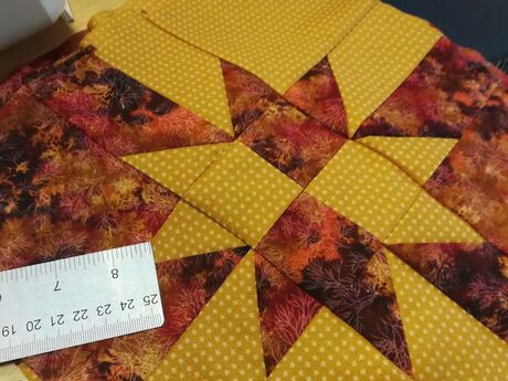 Frau Zimmer aus Meineweh hatte gute Pläne. Sie wollte mit den Frauen Patchworksterne fertigen, die zum Schluss als Mitteldecke, Kissen, Wandbehang o.ä. verwenden werden.
