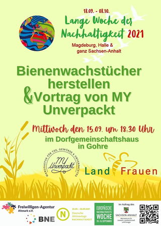 Umrahmt wurde unsere Veranstaltung von der "Langen Woche der Nachhaltigkeit 2021", organisiert von der Freiwilligen Agentur Altmark e.V.. Gern haben wir uns denen angeschlossen.