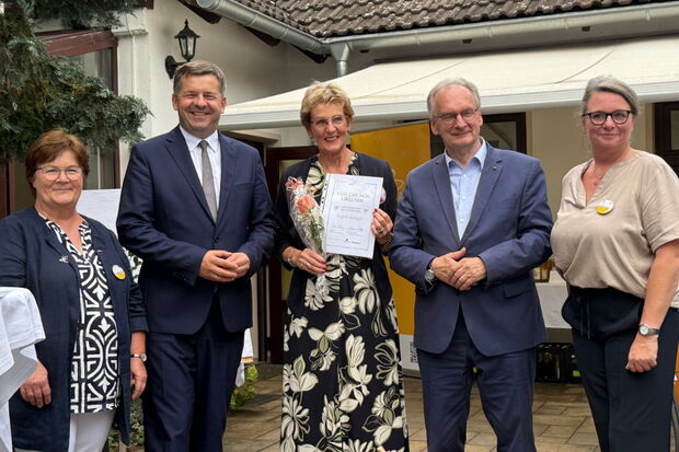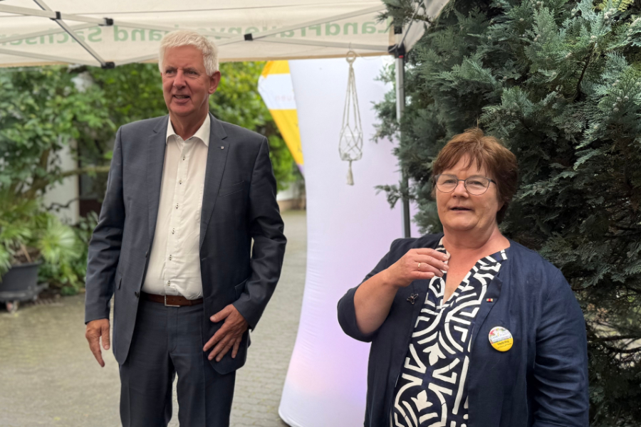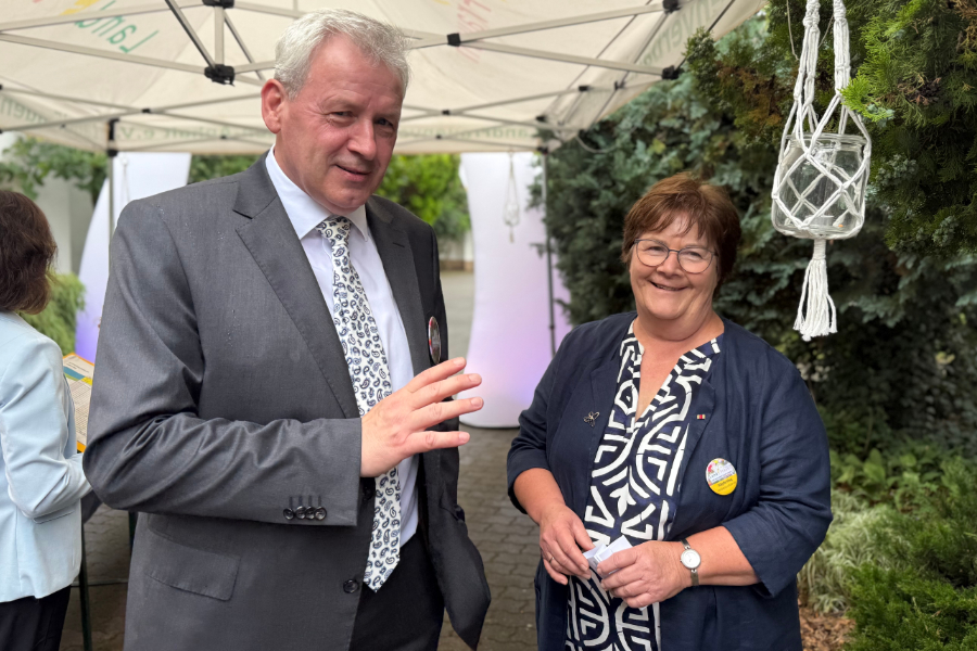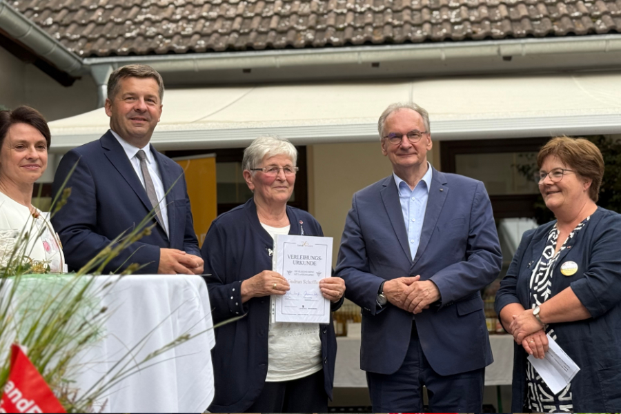 Ein besonders berührender Moment war die Verleihung einer Ehrenmedaille des Ministerpräsidenten an Sibylle Klug. Diese besondere Auszeichnung wird ausschließlich vom Ministerpräsidenten verliehen – als Symbol für persönliche Anerkennung und als Dank an Menschen im Land, die sich in besonderer Weise engagieren. In seiner Rede dankte er ihr persönlich für ihre mittlerweile elfjährige ehrenamtliche Funktion als Landesvorsitzende. Mit einem Augenzwinkern fügte er hinzu, dass die Reihenfolge immer so lauten müsse: „Erst das Bundesverdienstkreuz, dann erst die Medaille.“