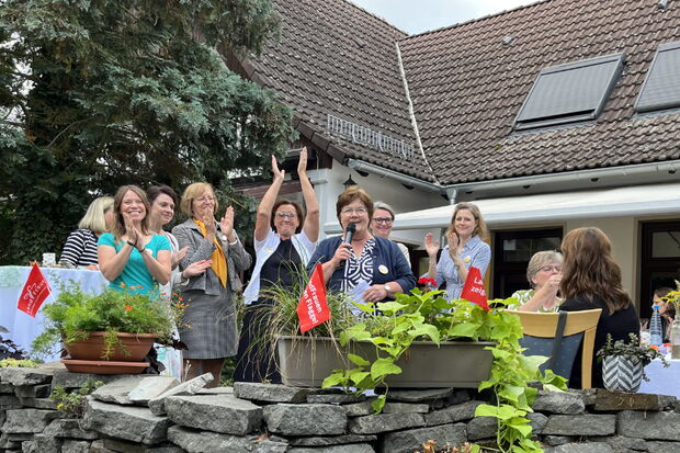 Nach der offiziellen Eröffnung durch die Landesvorsitzende Sibylle Klug wurde zunächst mit einem Glas Sekt auf das Jubiläum angestoßen. „Wie es sich für ein Jubiläum gehört, lädt man sich auch Gäste ein“, zitierte Sibylle Klug in ihrer Eröffnungsrede.