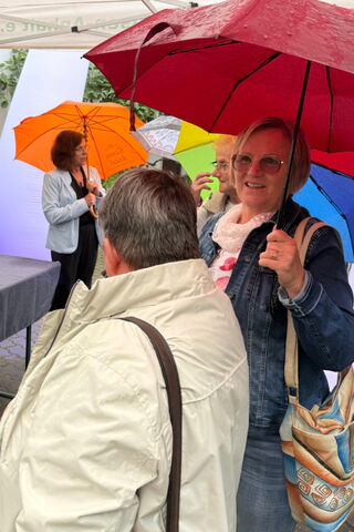 Pünktlich zum Beginn um 14:00 Uhr hörte auch der Regen auf, sodass die letzten Tische gerichtet und abgedeckt werden konnten – alle fanden ihren Platz.