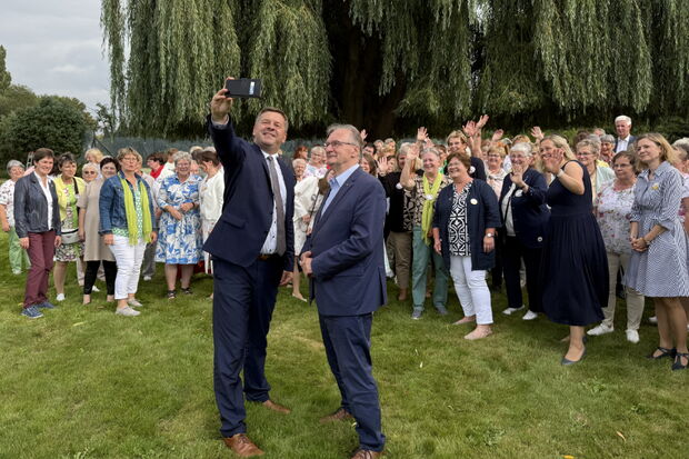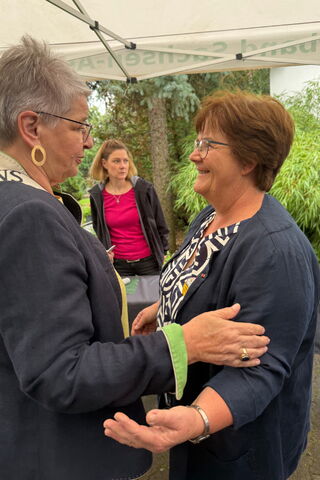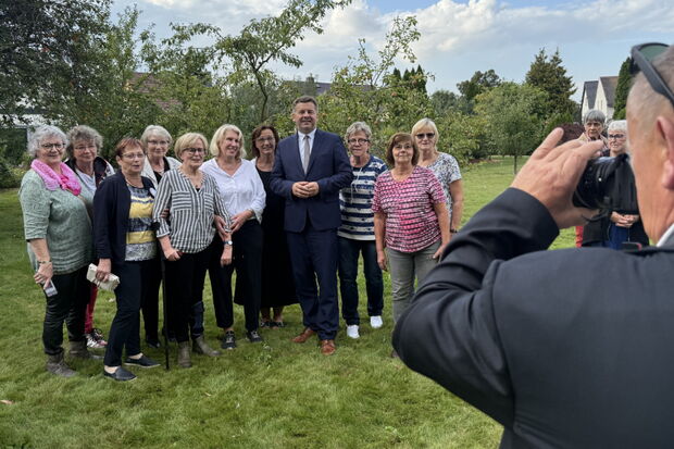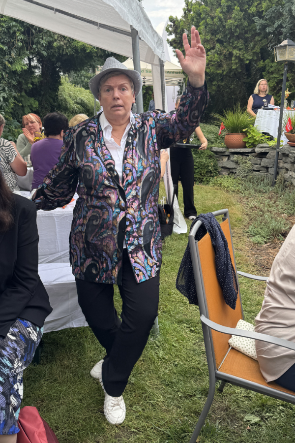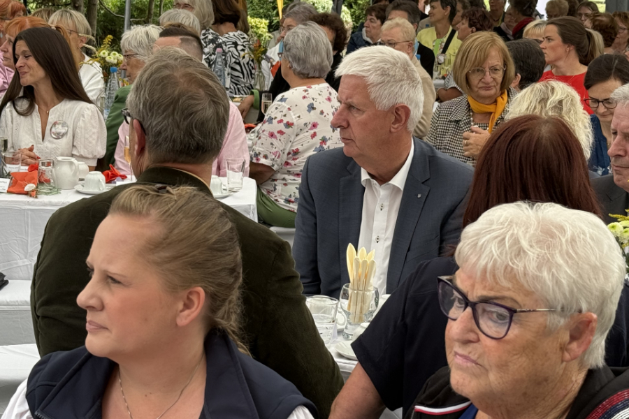 Eine besonders schöne Erinnerung war das gemeinsame Gruppenfoto mit beiden Politikern und Gästen, das die Verbundenheit und Wertschätzung symbolisch festhielt. Im malerischen Garten des Hotels, unter der großen Weide, versammelten sich alle Teilnehmerinnen und lächelten in die Kamera. Im Anschluss nutzten viele Frauen die Gelegenheit, um gemeinsam mit den Politikern weitere kleine Erinnerungsfotos zu machen.