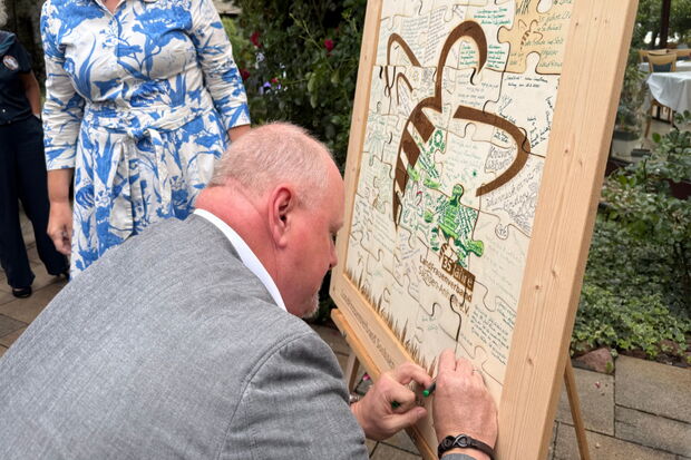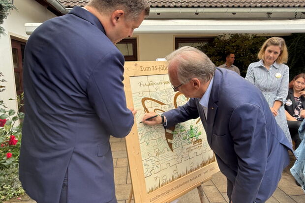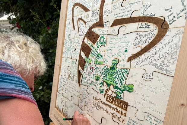 Auf der Jubiläumsfeier wurde das Bienenpuzzle feierlich enthüllt und sorgte für große Begeisterung. Im Anschluss verewigten sich Ministerpräsident Reiner Haseloff und Landwirtschaftsminister Sven Schulze auf einem noch freien Puzzleteil. Auch weitere Gäste aus Politik und befreundeten Verbänden nutzten die Gelegenheit, ihre Unterschriften auf dem unteren Teil des Puzzles zu hinterlassen.