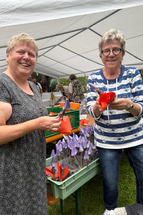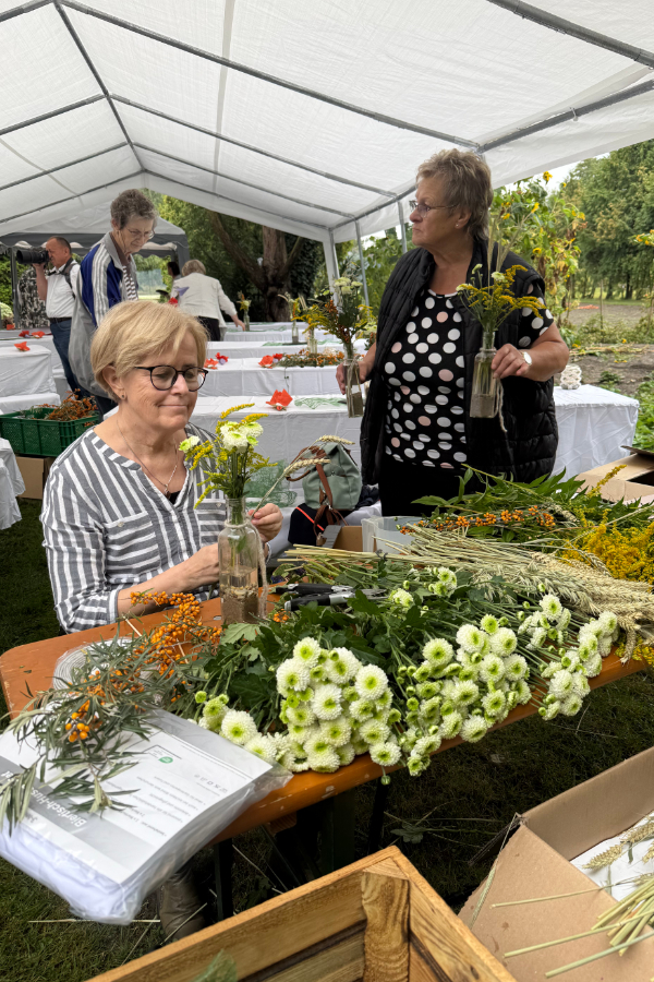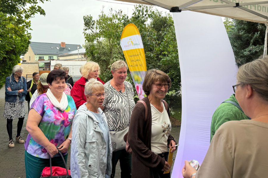 Schon bei der Ankunft war spürbar, wie viel Herzblut in die Vorbereitungen geflossen war. Die beiden Landfrauenvereine aus Nutha und dem Fläming hatten an mehreren Abenden die Dekoration vorbereitet: liebevoll geschmückte Tische und Makramee-Teelichtgläser für die Pavillons sorgten für eine besondere Atmosphäre.