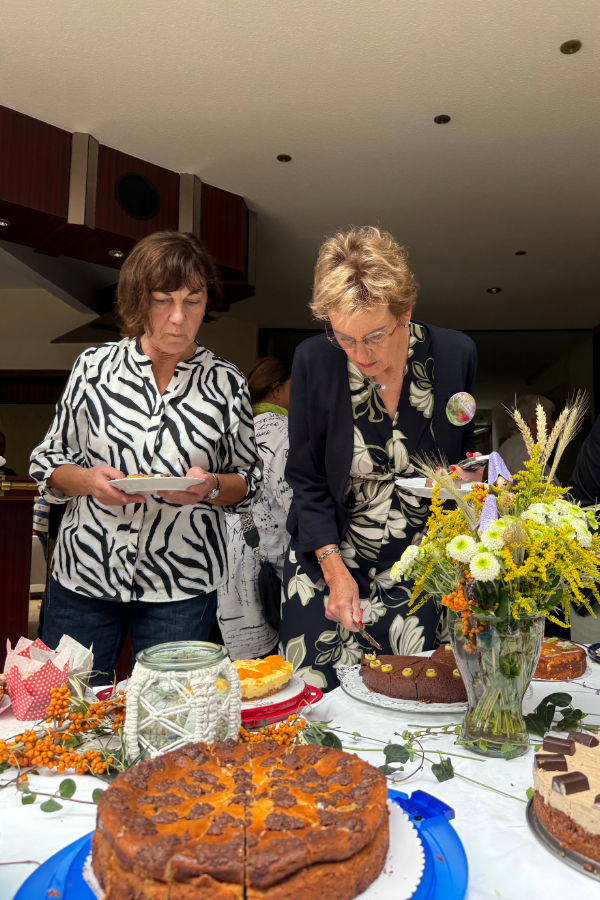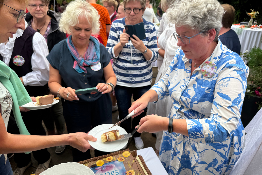 Wie es sich für ein Jubiläum gehört, durfte eine große Jubiläumstorte nicht fehlen. Landesvorsitzende Sibylle Klug und Annemarie Keding schnitten sie gemeinsam an. Dazu gab es ein reichhaltiges Kuchenbuffet mit selbstgebackenen Kuchen von den Landfrauen aus der Region.