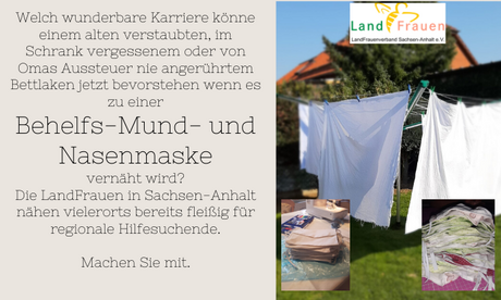 die Landfrauen sind dafür bekannt, dass sie helfen und mit anpacken. In der derzeitigen Krise ist der Zusammenhalt unserer Gesellschaft wichtig. Deshalb rufen wir Sie zur Unterstützung auf: Momentan fehlen an vielen wichtigen Stellen Mund- und Nasenmasken.