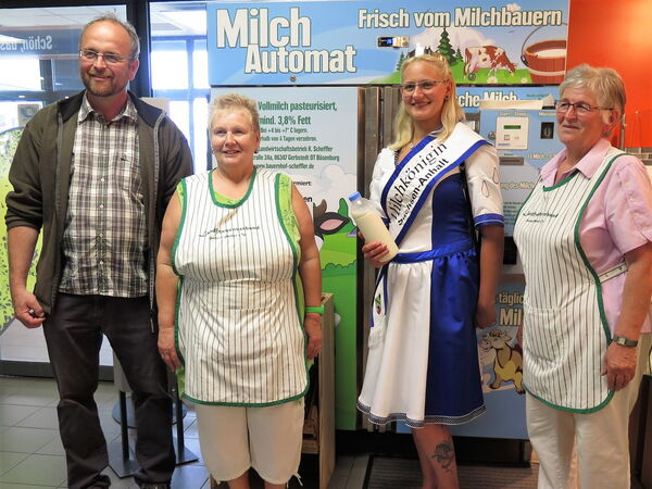 Natürlich durfte an diesem besonderen Tag auch eine Vorführung des Milchautomaten nicht fehlen. Seit 2016 steht er bereits im EDEKA Center an der Hermesstraße. Hier können die Kunden ihre gewünschte Menge an tagesfrischer Vollmilch selbst zapfen – und der Automat erfreut sich großer Beliebtheit. Die Milch in den Automaten kommt vom Hof des Milchbauern Karsten Scheffler. Dort wird sie direkt nach dem Melken pasteurisiert, um eventuelle Keime abzutöten. „Wir homogenisieren die Milch aber nicht, damit bleibt der natürliche Rahm und dessen typischer Geschmack erhalten“, erklärt Milchbauer Karsten Scheffler. Neben den bisherigen Glasflaschen gibt es seit Kurzem auch Plastikflaschen fürs Abzapfen der Milch. Die Kunden bringen ihre sauberen Flaschen – dem Nachhaltigkeitsgedanken folgend – immer wieder zum Befüllen in den Markt mit.