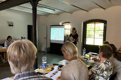 Zu Beginn der Schulung erläuterte Cordelia Junge, Projektkoordinatorin der beiden Gesundheitsprojekte, das Präventionsprojekt „Bauernpaten“. Anschließend ging sie auf Neuerungen für die Projektphase 2025/2026, die Rahmenbedingungen des Projektes, die Abläufe im Projekt sowie alle relevanten Formulare ein. In der neuen Förderperiode wird das Thema Nachhaltigkeit in die Hofführungen mit einfließen. Hier tauschten sich alle aus, wie das gelingen kann. Hierzu stellte Frau Junge verschiedene Materialien vor. Dieses Wissen soll gemeinsam weiterentwickelt und während zukünftiger Führungen praktisch erprobt werden.