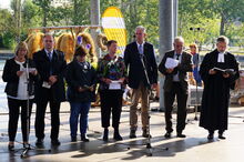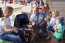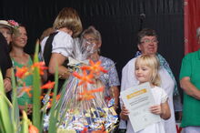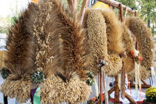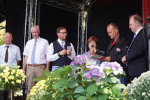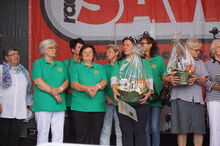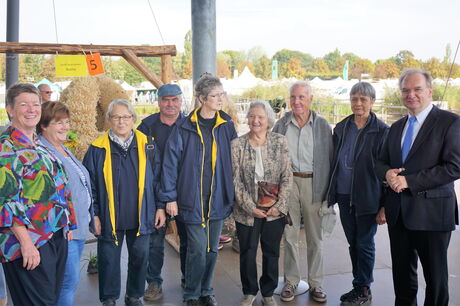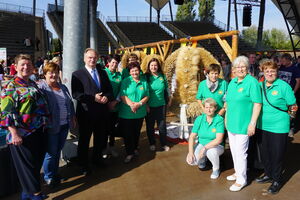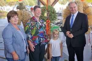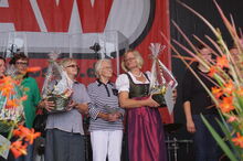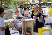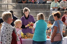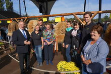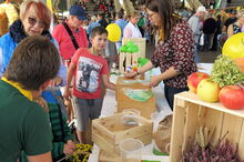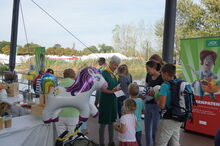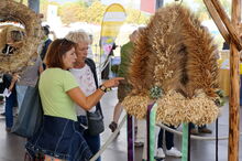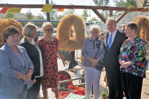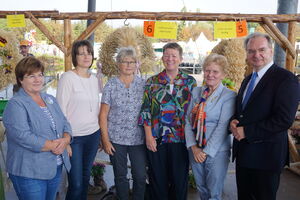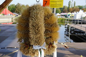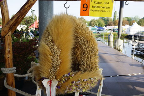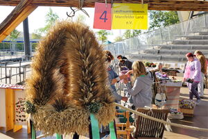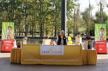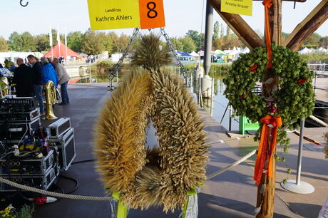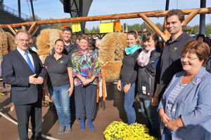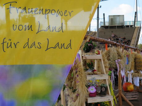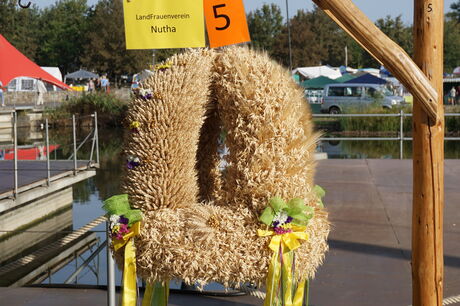 „LandFrauen unterwegs in vielen Schuhen“ – die Devise zum Landeserntedankfest 2018, geschrieben an einer Tafel auf einer Leiter mit liebevoll bepflanzten Schuhen. Gemeint ist: LandFrauen können viel mehr als nur Kuchen backen. Sie sind engagiert in unterschiedlichsten Richtungen, wie auch der Erntekronenwettbewerb im Magdeburger Elbauenpark. Rund um den 22. Landeserntekronenwettbewerb verwandelte sich die Seebühne in einen Wissenspfad für Groß und Klein. An den Stationen konnten Kinder ihr Wissen rund um das Thema Lebensmittel und Ernährung testen. Die Erwachsenen erhielten Anleitungen zum Binden von Erntekränzen (LandFrauen Nutha) und beim Verspinnen von Alpakawolle (LandFrauen Zernitz). Auch wunderschöne ländliche Blumendekorationen wurden hergestellt und zum Verkauf angeboten (LandFrauen Roxförde).