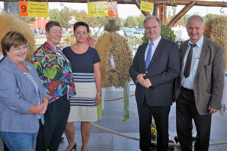 Getreu dem Motto: „Spieglein, Spieglein an der Wand, wer hat die schönste Erntekrone im ganzen Land?“, hingen neun prächtige und sehr anspruchsvoll gebundene Erntekronen zum Anschauen und Bestaunen für die Besucher auf der Seebühne. Die Fach-Jury hatte es auch dieses Jahr bei der Bewertung nicht leicht. Zur Wahl des Publikumslieblings wurden über 1500 Stimmen abgegeben. Die Jury und das Publikum waren sich jedoch einig: Die schönste Krone in diesem Jahr war die des Heimatvereins Ragösen/Krakau e.V.. Platz zwei belegten die Vorjahressieger, die LandFrauen aus Nutha und der dritte Platz ging an die LandFrau Kathrin Ahlers. Ihre Krone wird traditionell für die Erntedank-Ausstellung an das Ministerium für Umwelt, Landwirtschaft und Energie in Sachsen-Anhalt verliehen. Zum ersten Mal fand dieses Jahr die Siegerehrung auf der SAW-Bühne in sehr großem Rahmen statt. So übergaben die Landesvorsitzende der LandFrauen Frau Sibylle Klug (LandFrau des Jahres 2018) zusammen mit Ministerpräsident Dr. Reiner Haseloff und Landwirtschaftsministerin Prof. Dr. Claudia Dalbert die Preise an die Sieger.