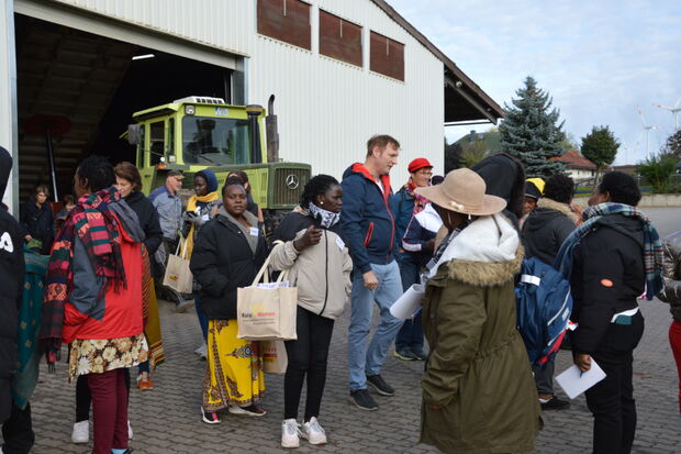 Temperaturtechnisch war es etwas zu frisch für die afrikanischen Frauen an dem Tag. Warm gekleidet wurde zunächst der Agrarbetrieb der Familie Krüger besichtigt. Dort wird ein wichtiges Grundnahrungsmittel für den deutschen Markt angebaut und gehandelt - die Kartoffel. Die Delegation aus Uganda konnte sich von der Ernte über den Transport in die Halle bis hin zur Lagerung alles ansehen.