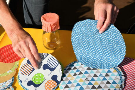 Und fertig ist die hübsche und umweltfreundliche alternative Abdeckung für Schüsseln, Gläser usw.