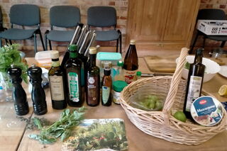 Frau Simonsen erläuterte sehr kurzweilig, wie die mediterranen Speisen auf südländische Art genossen werden - in mehreren kleinen Gängen und mit viel Zeit. Zwischendurch erfuhren die Teilnehmerinnen Wissenswertes über die Weinrebe, der Heilpflanze des Jahres 2023, welche gute Vitalstoffe sich mitbringt und dass sie mit all ihren Teilen, Reben, Blättern, Trauben, Saft, Wein zu unserem Essen unser Leben bereichert.