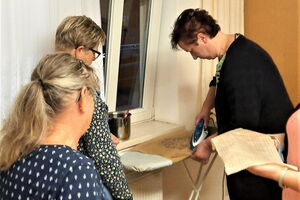 Während die Bienenwachstücher hergestellt wurden gab es unter den Frauen einen regen Austausch mit vielen Tipps zur Plastikvermeidung im Alltag. Hierzu gehörten beispielsweise Haushaltsideen, wie mit Efeu-Blättern zu waschen oder eine Waschkugel zu benutzen.