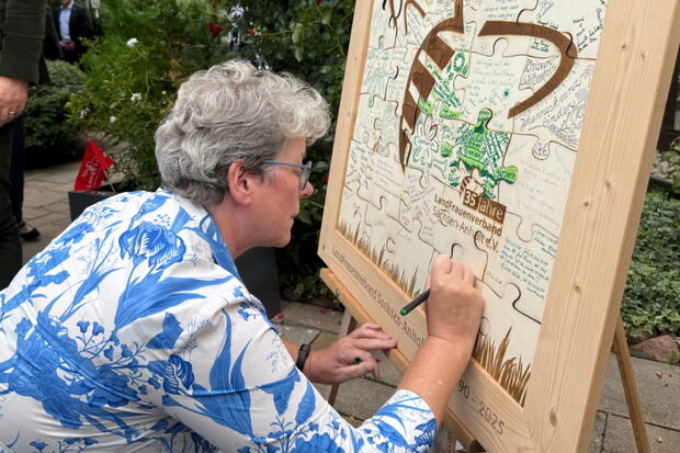 Auf der Jubiläumsfeier wurde das Bienenpuzzle feierlich enthüllt und sorgte für große Begeisterung. Im Anschluss verewigten sich Ministerpräsident Reiner Haseloff und Landwirtschaftsminister Sven Schulze auf einem noch freien Puzzleteil. Auch weitere Gäste aus Politik und befreundeten Verbänden nutzten die Gelegenheit, ihre Unterschriften auf dem unteren Teil des Puzzles zu hinterlassen.