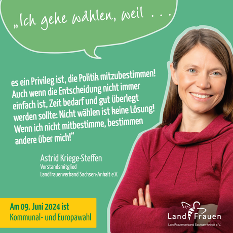 Am 9. Juni 2024 sollte jede die Möglichkeit nutzen, ihre Stimme bei den Kommunalwahlen und der Europawahl zu erheben, um aktiv an der Demokratie teilzunehmen. Diese Wahlen sind entscheidend für uns Frauen, für die Gestaltung der Zukunft unserer Gemeinden und Europas.