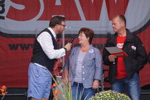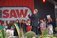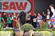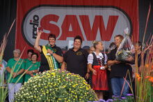 Getreu dem Motto: „Spieglein, Spieglein an der Wand, wer hat die schönste Erntekrone im ganzen Land?“, hingen neun prächtige und sehr anspruchsvoll gebundene Erntekronen zum Anschauen und Bestaunen für die Besucher auf der Seebühne. Die Fach-Jury hatte es auch dieses Jahr bei der Bewertung nicht leicht. Zur Wahl des Publikumslieblings wurden über 1500 Stimmen abgegeben. Die Jury und das Publikum waren sich jedoch einig: Die schönste Krone in diesem Jahr war die des Heimatvereins Ragösen/Krakau e.V.. Platz zwei belegten die Vorjahressieger, die LandFrauen aus Nutha und der dritte Platz ging an die LandFrau Kathrin Ahlers. Ihre Krone wird traditionell für die Erntedank-Ausstellung an das Ministerium für Umwelt, Landwirtschaft und Energie in Sachsen-Anhalt verliehen. Zum ersten Mal fand dieses Jahr die Siegerehrung auf der SAW-Bühne in sehr großem Rahmen statt. So übergaben die Landesvorsitzende der LandFrauen Frau Sibylle Klug (LandFrau des Jahres 2018) zusammen mit Ministerpräsident Dr. Reiner Haseloff und Landwirtschaftsministerin Prof. Dr. Claudia Dalbert die Preise an die Sieger.