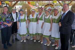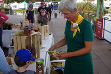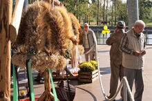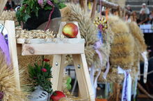 „LandFrauen unterwegs in vielen Schuhen“ – die Devise zum Landeserntedankfest 2018, geschrieben an einer Tafel auf einer Leiter mit liebevoll bepflanzten Schuhen. Gemeint ist: LandFrauen können viel mehr als nur Kuchen backen. Sie sind engagiert in unterschiedlichsten Richtungen, wie auch der Erntekronenwettbewerb im Magdeburger Elbauenpark. Rund um den 22. Landeserntekronenwettbewerb verwandelte sich die Seebühne in einen Wissenspfad für Groß und Klein. An den Stationen konnten Kinder ihr Wissen rund um das Thema Lebensmittel und Ernährung testen. Die Erwachsenen erhielten Anleitungen zum Binden von Erntekränzen (LandFrauen Nutha) und beim Verspinnen von Alpakawolle (LandFrauen Zernitz). Auch wunderschöne ländliche Blumendekorationen wurden hergestellt und zum Verkauf angeboten (LandFrauen Roxförde).