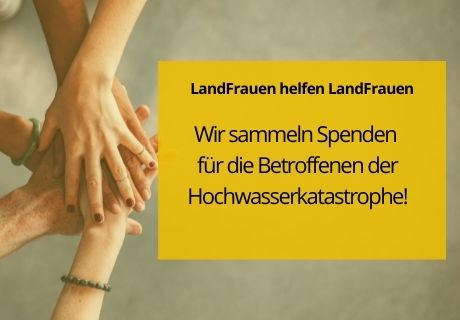 Wir Landfrauen sind eine starke Gemeinschaft. Jetzt ist die Zeit um unser Engagement mit finanzieller Unterstützung zu zeigen. Helfen Sie den Betroffenen der Hochwasserkatastrophe mit Ihrer Spende und mit Herz.