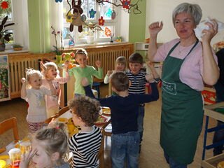 Im Auftrag der AOK Sachsen-Anhalt vermittelt der LandFrauenverband Sachsen-Anhalt e.V. Kindergartenkindern ein Gespür für saisonale und regionale Lebensmittel. Deshalb wird beim Projekt gemeinsam gerührt und geschnibbelt. Ob selbstgemachte Butter, Fruchtquark oder Brotgesichter – zusammen mit einer Landfrau bereiten die Kinder ein gesundes Frühstück zu.